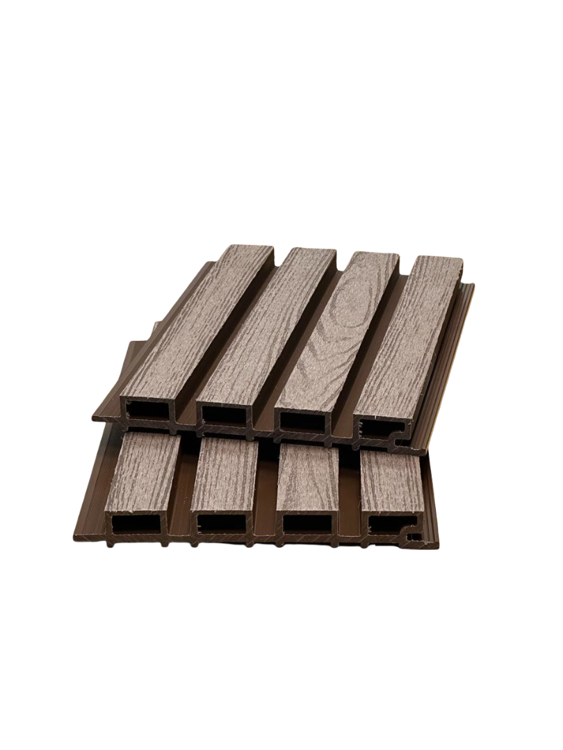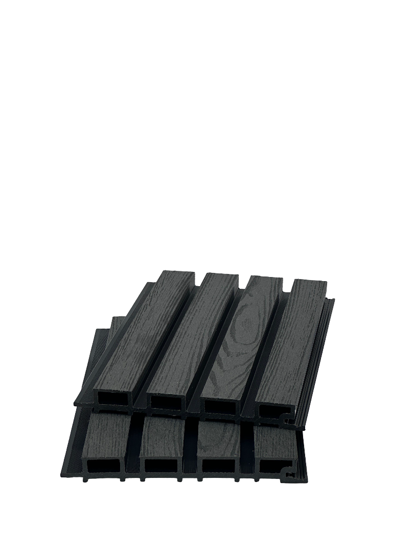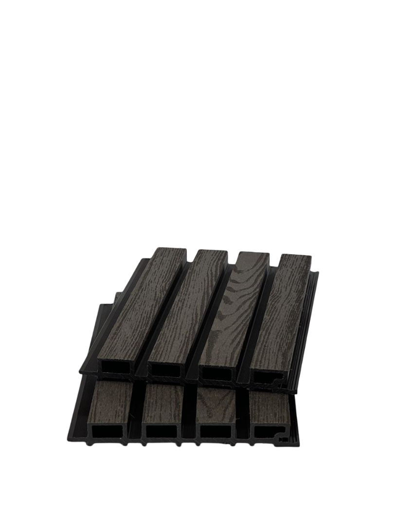 Фасадные панели из МПК (70% древесная мука, 27% полимера, 3% красители и улучшители).